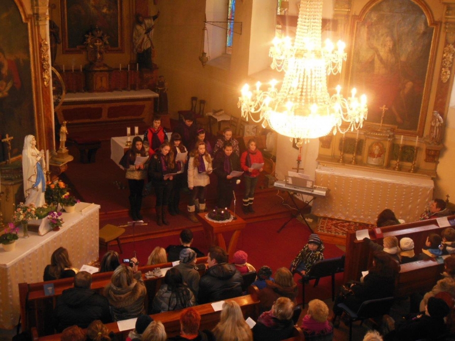 Zkusili jsme uspořádat malý adventní koncert v kostele sv. Martina. Jednalo se spíše o neformální setkání u adventního věnce. Děti nacvičily dvanáct skladeb. Od písniček z kancionálu, přes lidové vánoční až po Benešovské roráty. Zároveň se doprovázely na hudební nástroje - Klára a Zdenka Suché varhany, Pavel Jíša varhany, Markéta Žížalová a Simona Filandrová flétna, Gábina Zachová kytara. Purpuru zazpívaly i "maminky" - Marta Filandrová, Michaela Šetková a Jana Žížalová. Závěrečnou Ave Maria zazpívala Nana Kobaladze Nekvasilová. Ta také doprovodila děti na varhany při zpěvu Benešovských rorátů. Koncert se povedl, protože účinkující zpívali srdcem a diváci vytvořili krásnou adventní atmosféru.