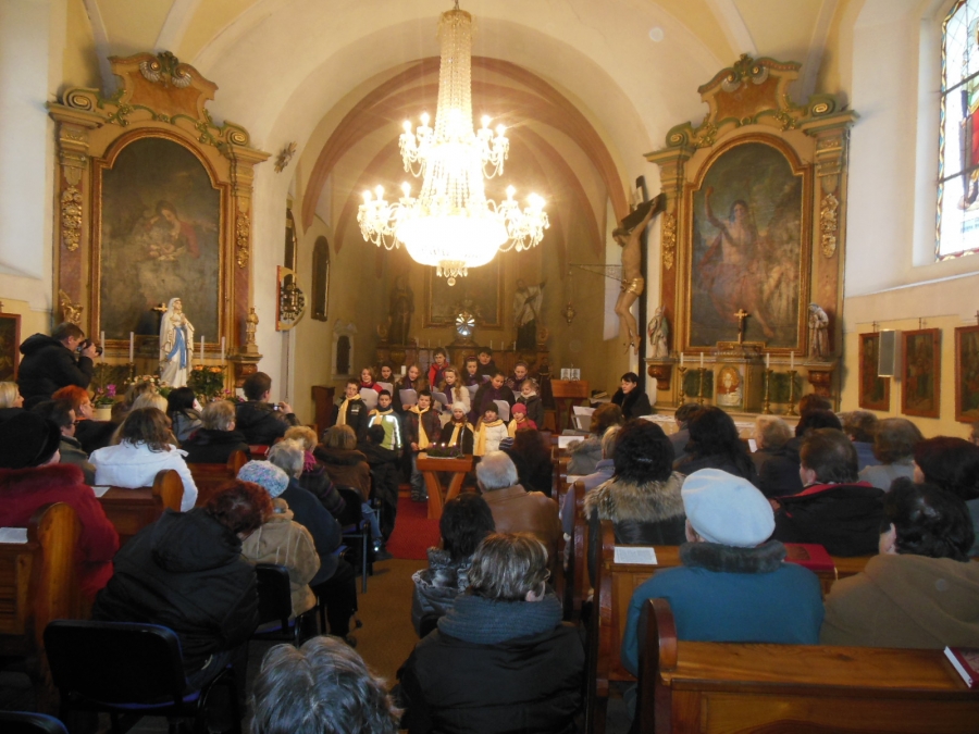 Zkusili jsme uspořádat malý adventní koncert v kostele sv. Martina. Jednalo se spíše o neformální setkání u adventního věnce. Děti nacvičily dvanáct skladeb. Od písniček z kancionálu, přes lidové vánoční až po Benešovské roráty. Zároveň se doprovázely na hudební nástroje - Klára a Zdenka Suché varhany, Pavel Jíša varhany, Markéta Žížalová a Simona Filandrová flétna, Gábina Zachová kytara. Purpuru zazpívaly i "maminky" - Marta Filandrová, Michaela Šetková a Jana Žížalová. Závěrečnou Ave Maria zazpívala Nana Kobaladze Nekvasilová. Ta také doprovodila děti na varhany při zpěvu Benešovských rorátů. Koncert se povedl, protože účinkující zpívali srdcem a diváci vytvořili krásnou adventní atmosféru.